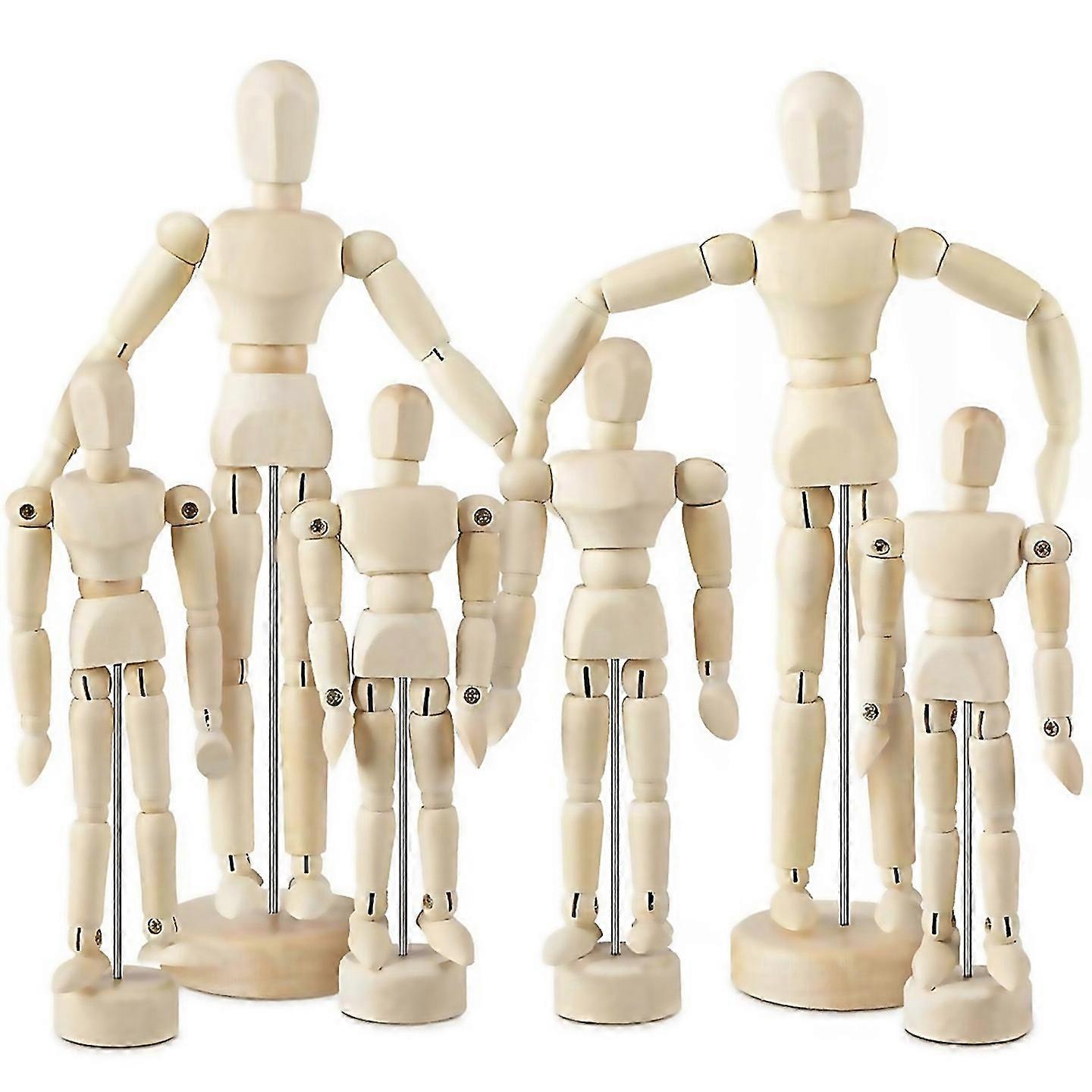 For 6 Pcs Artist Mannequin Model Wooden Manikin Drawing Moveable Figure Model With Stand Flexible