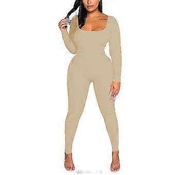Frauen Einfarbiger Body Stretch Strampler Langarm Playsuit
