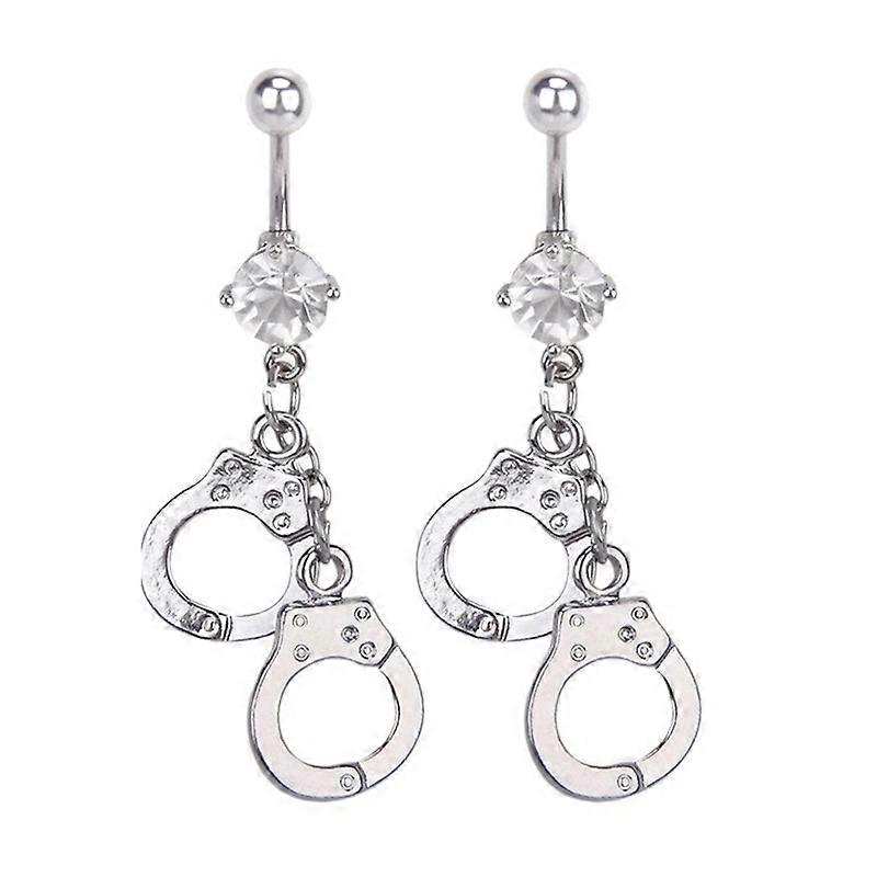 Women Handcuffs Rhinestone Body Piercing Navel Belly Bar Button Barbell Ring