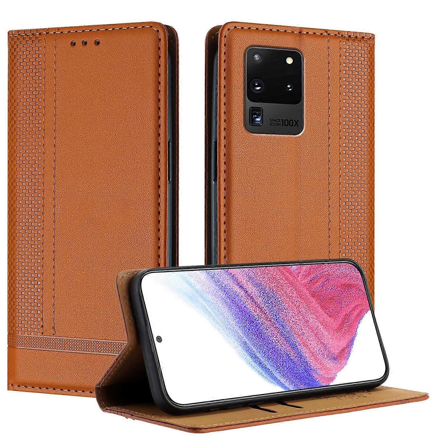 For Samsung Galaxy S20 Ultra Wallet Case,PU Leather Folio Flip Kickstand Protective Shockproof Case-Brown