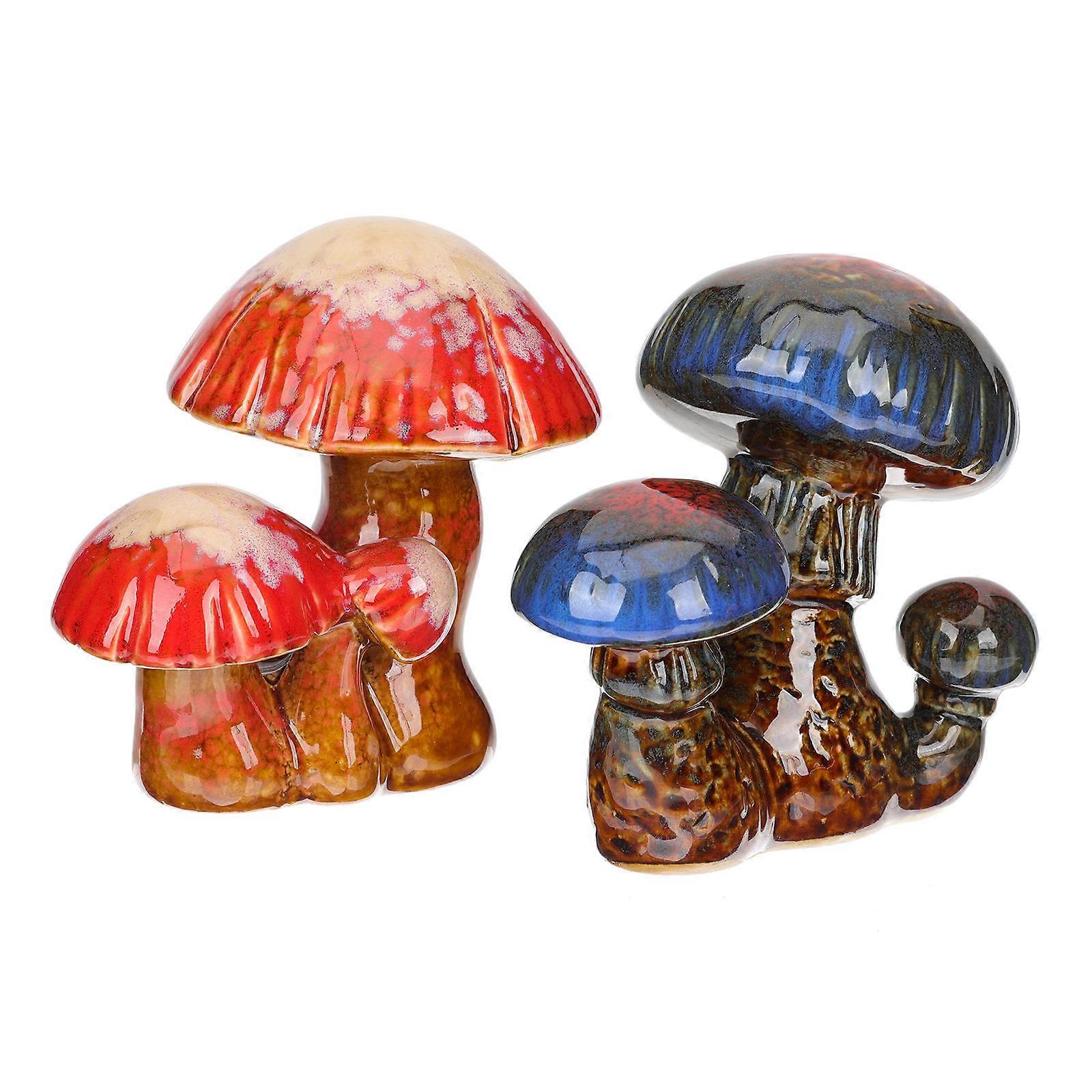Garden Decoration 2Pcs Assorted Color Durable Ceramic Craft Lawn Mushroom Statue