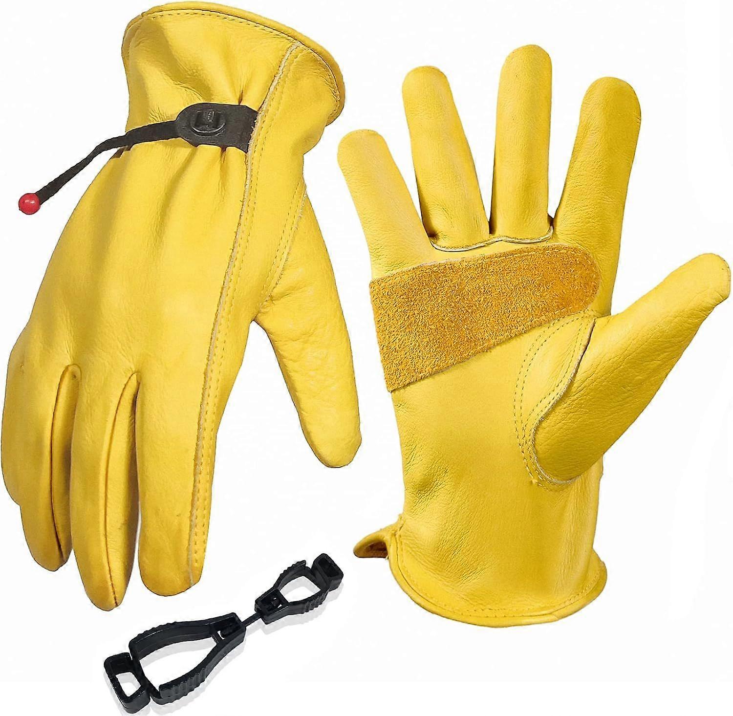 Men's/Women's Gardening Gloves, Cowhide Leather Work Gloves, Anti-thorn and