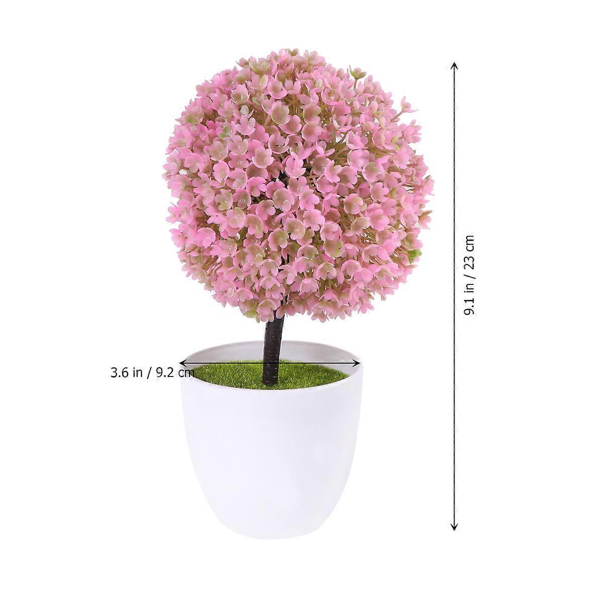 Fake Bonsai Simulation Cherry Ball Potted Plant Indoor Use Easy to Clean Effect 3Set