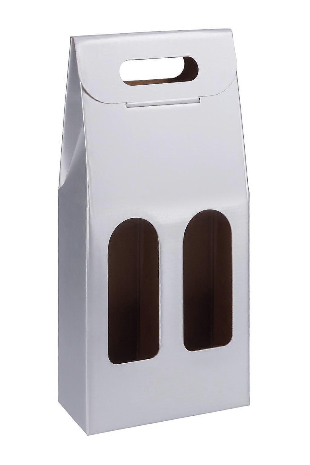 Gift box for 2 bottles wine with windows and with handle - pcs. 40 - silver colour