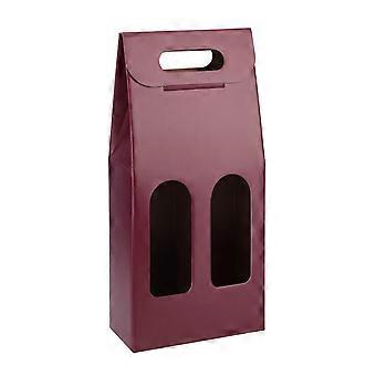 Gift box for 2 bottles wine with windows and with handle - pcs. 40 - bordeaux colour
