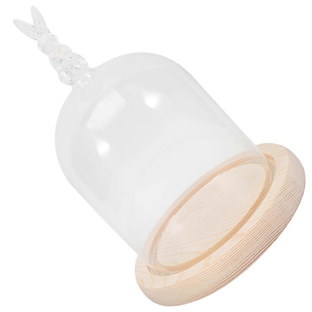 Glass Cover Display Tray for Storage Use 2Sets Rabbit Shape with Wooden Base