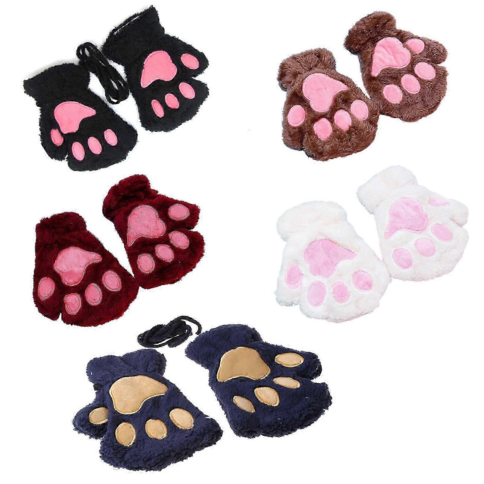 Half finger gloves with fuzzy plush and kitten embroidery