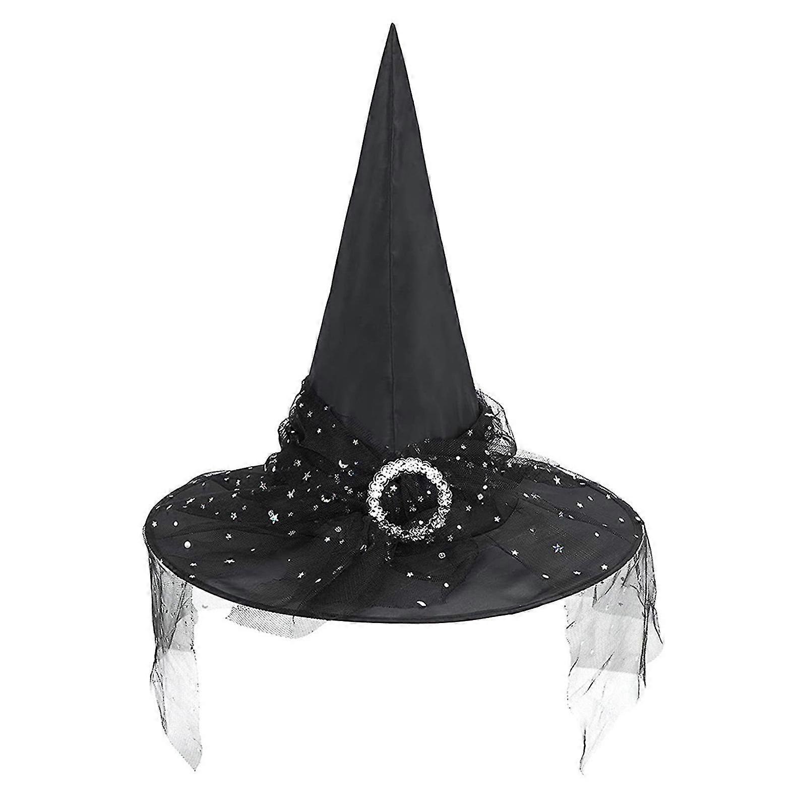 Halloween Black Witch Hat Universal Witch Cosplay Hat with Mesh for Adult Children