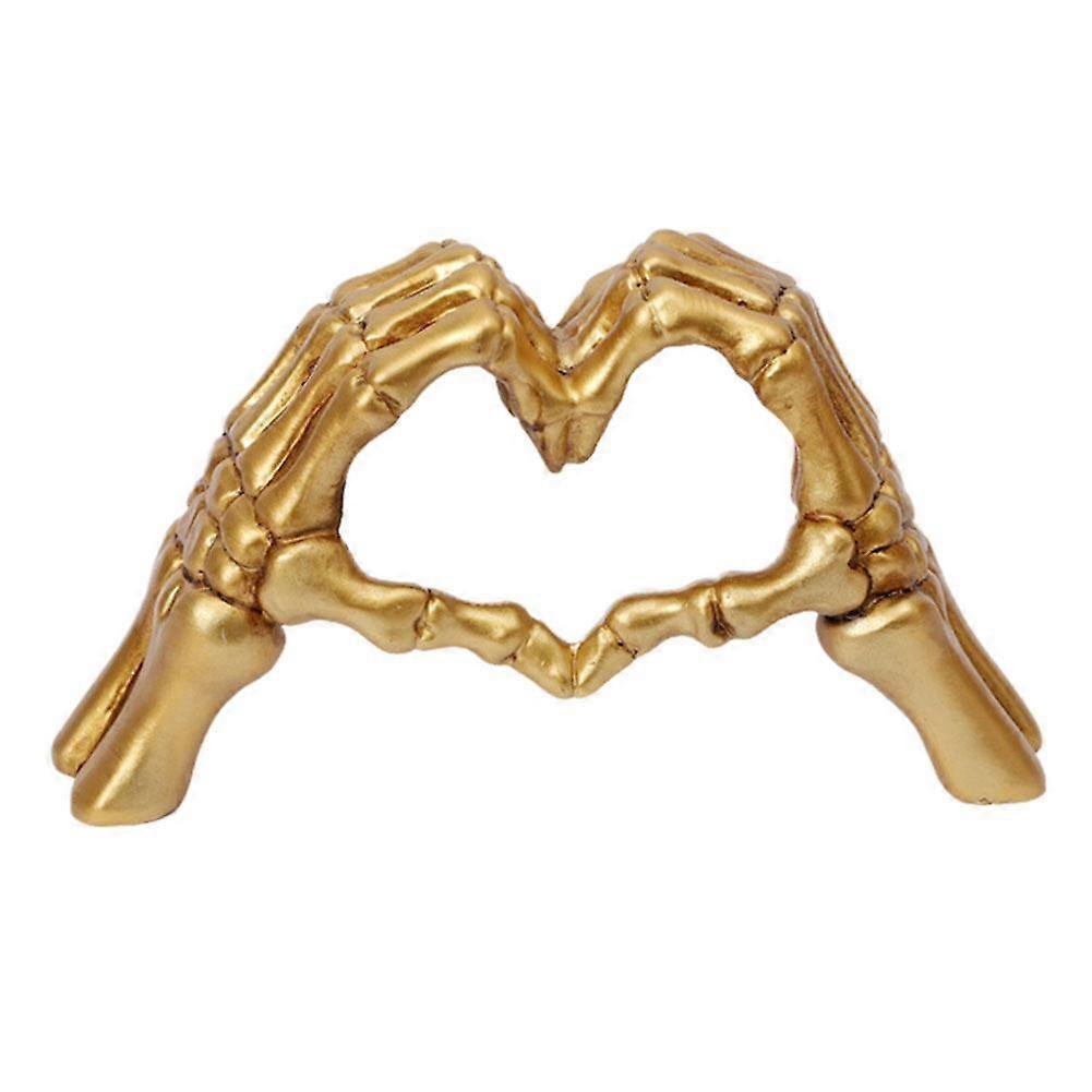 Hand Bone Hand Heart Statue, Skeleton Hands Heart Gold Decor Love Gesture Statue