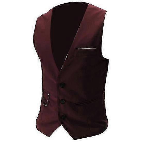 Men Solid Color V Neck Sleeveless Button Pocket Blazer Suit Waistcoat