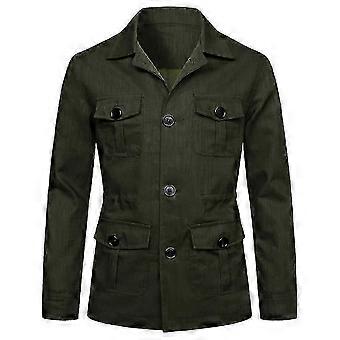 Herren Mäntel Safari Jacke Leinen Britisch Retro Adel Anzug Taschen Oberbekleidung Mode Einfarbig Männliche Oberteile