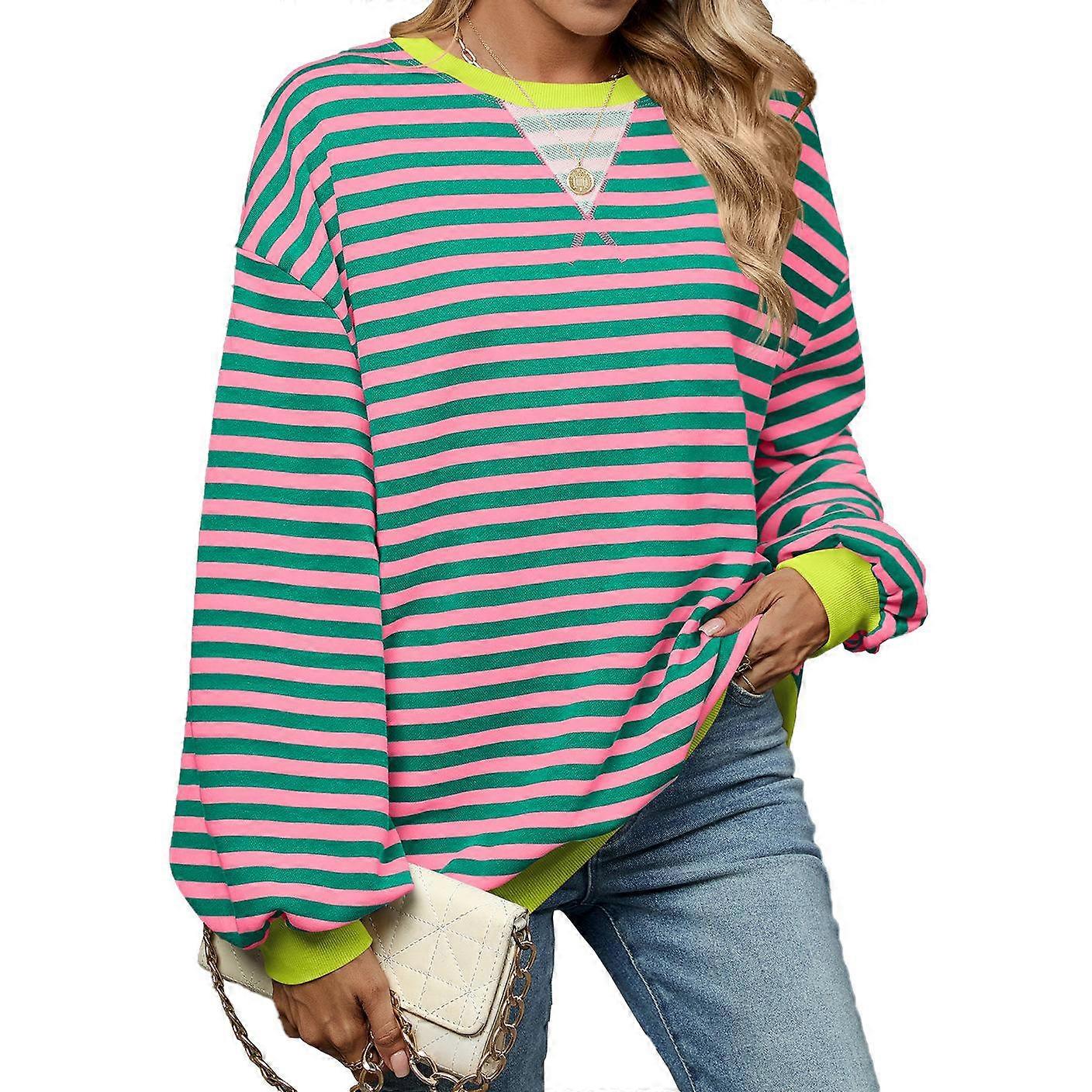 HNXC Women's Fashion Casual Stripe Print Long Sleeve O-Neck Hoodies & Sweatshirts