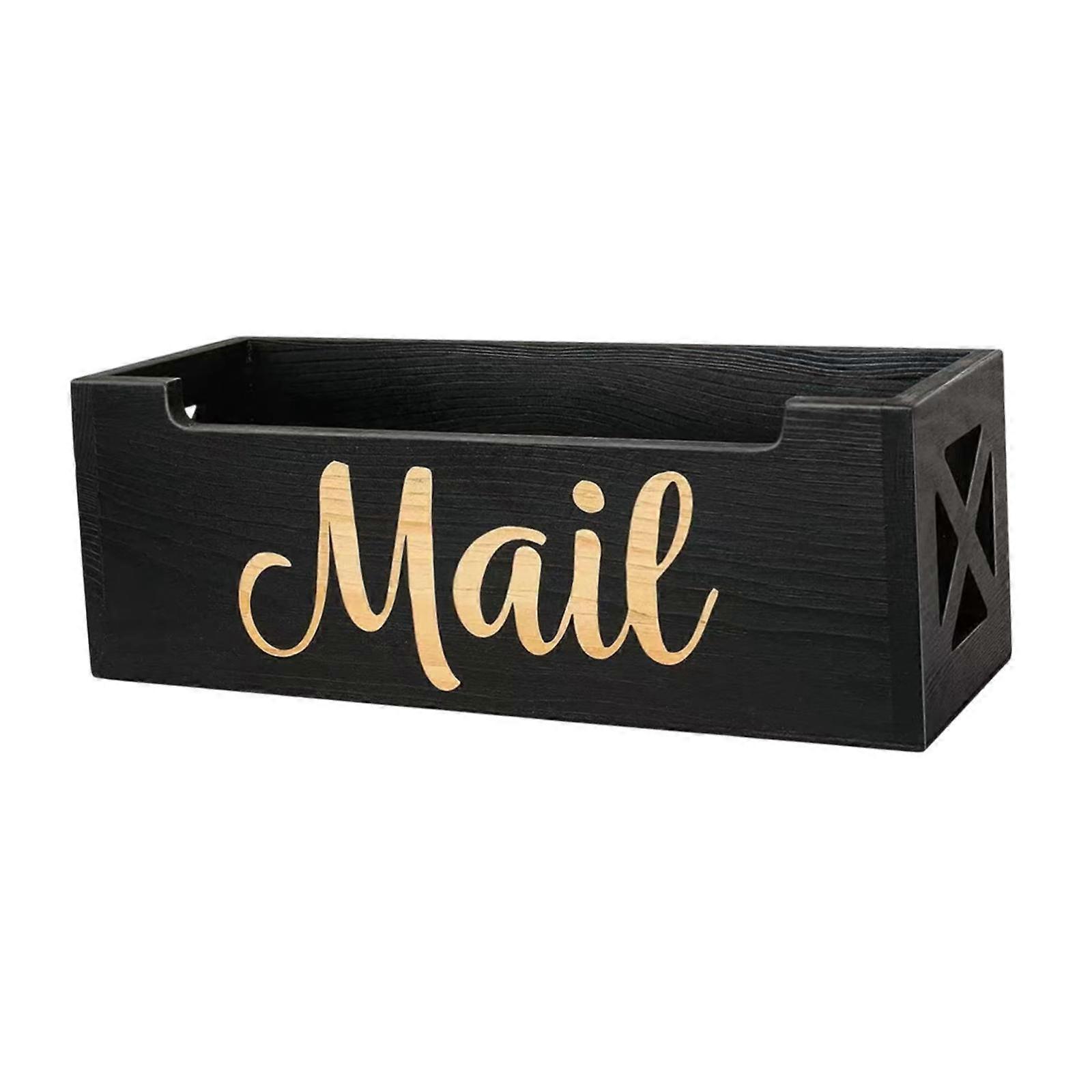 Wood Mail Organizer Multipurpose Decorative Black Wall Mounted or Countertop