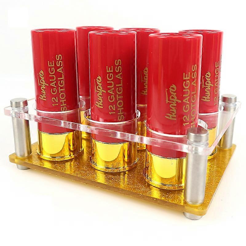 Hunting Shooting Outdoor Tableware Gift 12 Gauge Shotgun Shell Shot Glasses with Golden Acrylic Cup Holder Bullet Shape Cup Set