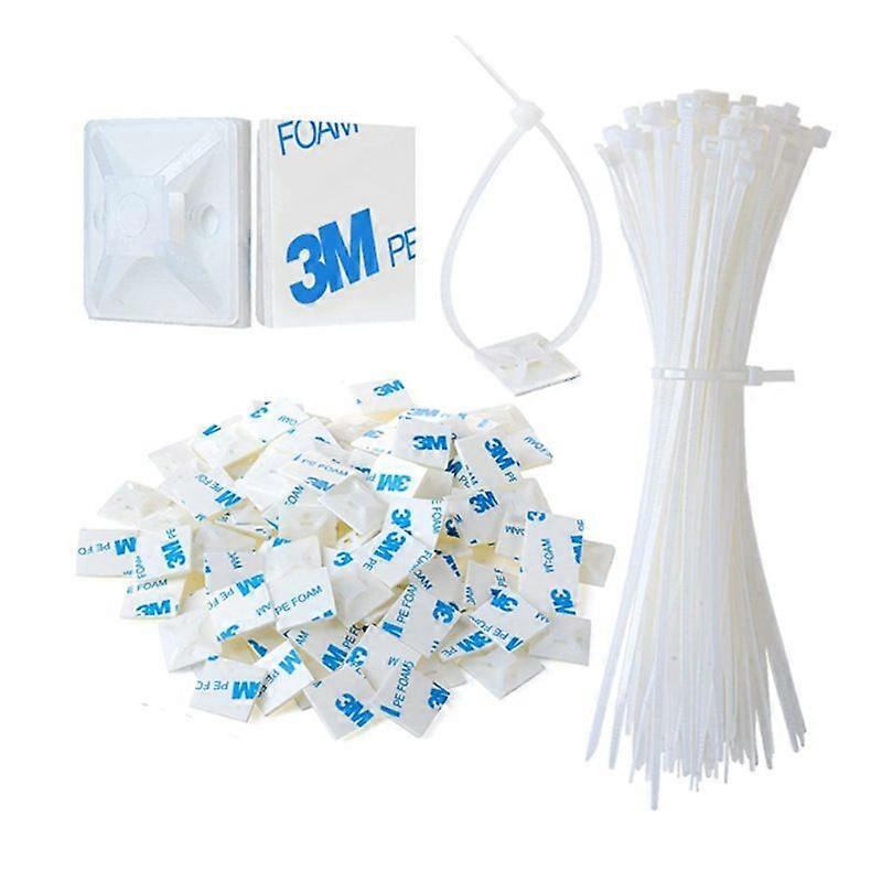 Cable Tie Set, Betterlife 100 PCS Cable Ties White Cable Ties with Adhesive