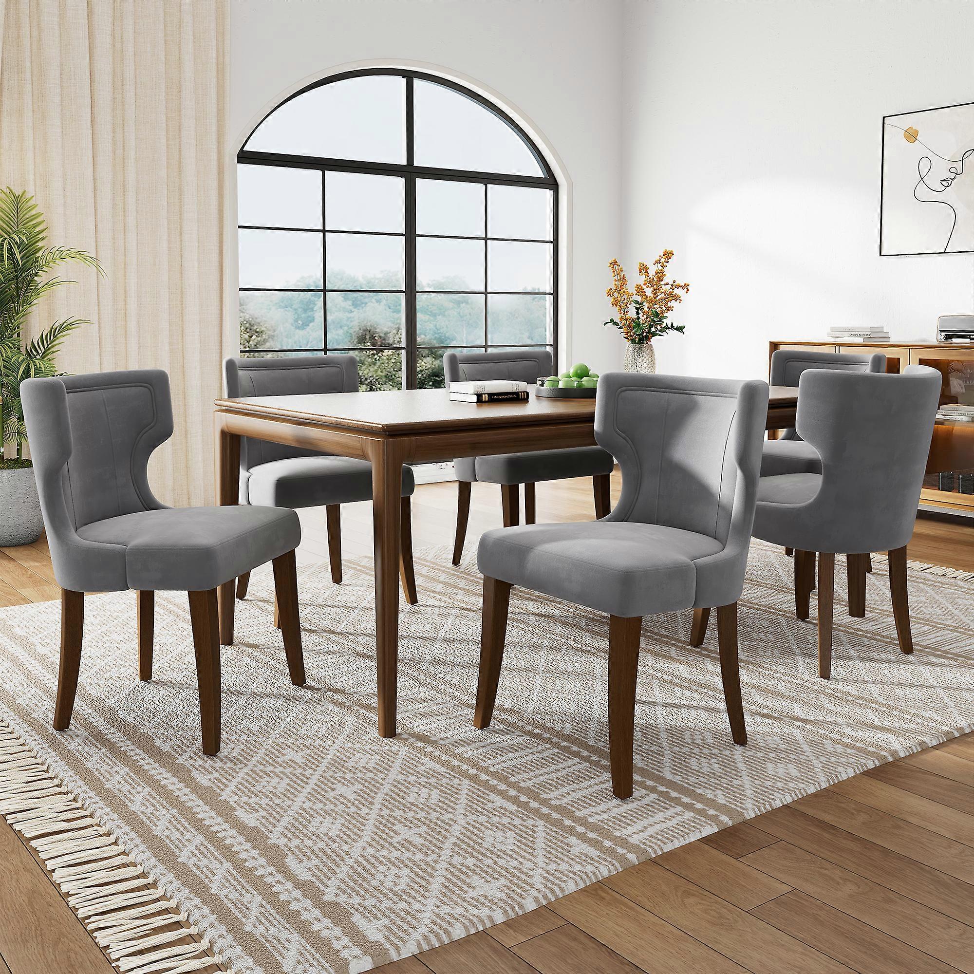 kashemano eisure suit chair (six-piece set), gray seat cushions, brown supporting legs, waist support.