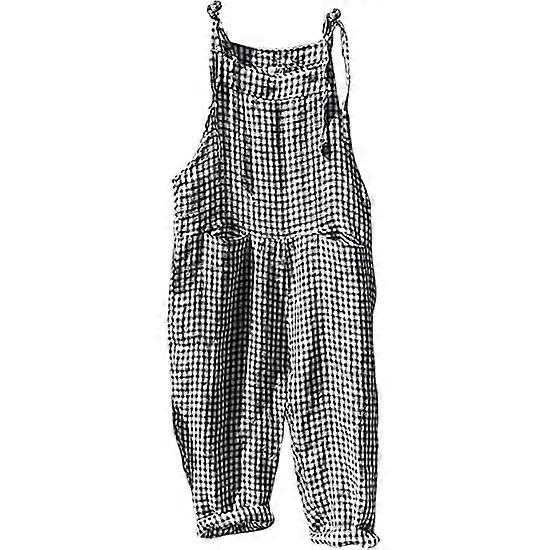 Women's Striped Overall Jumpsuits Casual Baggy Adjustable Straps Bib Wide Leg Pants sleeveless and adjusted straps chest bib with pockets the loose-fit legs