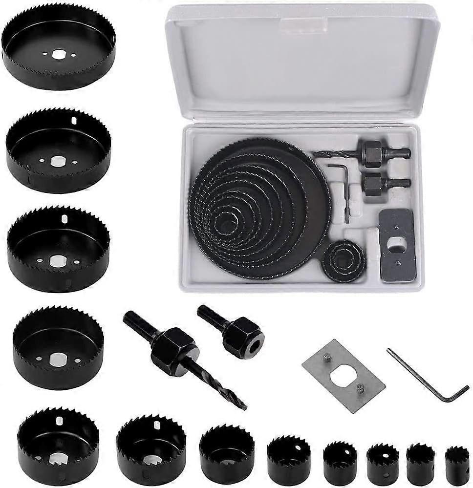 Hole Saw Set 16 pieces with 12 pieces Hole Saw 19mm - 127 mm, 2 Mandrels, 1