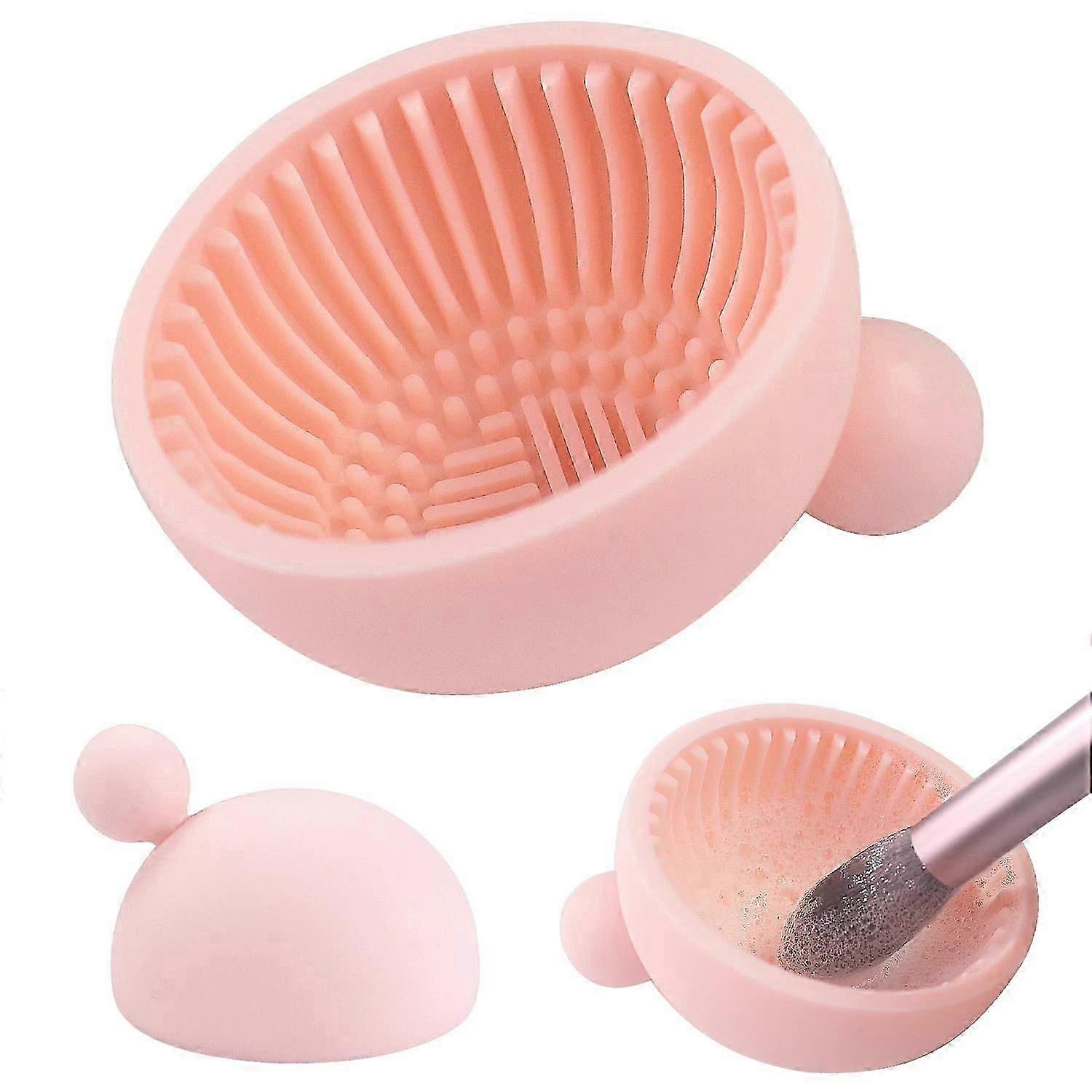 Makeup Brush Cleaning Bowl, Brush Cleaning Pad, Silicone Makeup Brush Cleaning Mats(Pink) a
