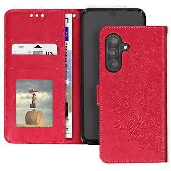 Mandala Flower Case for Galaxy A26 Wallet Strap, Fuschia