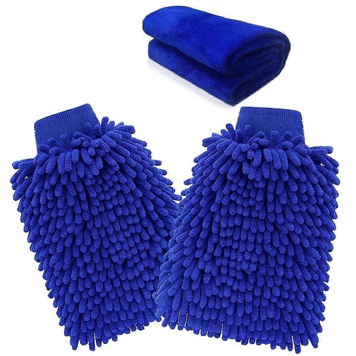 Microfiber Mitt, Car wash mitt(2-Pack) noodle Microfiber Wash Gloves car cleaning Microfiber mitt with free polishing cloth