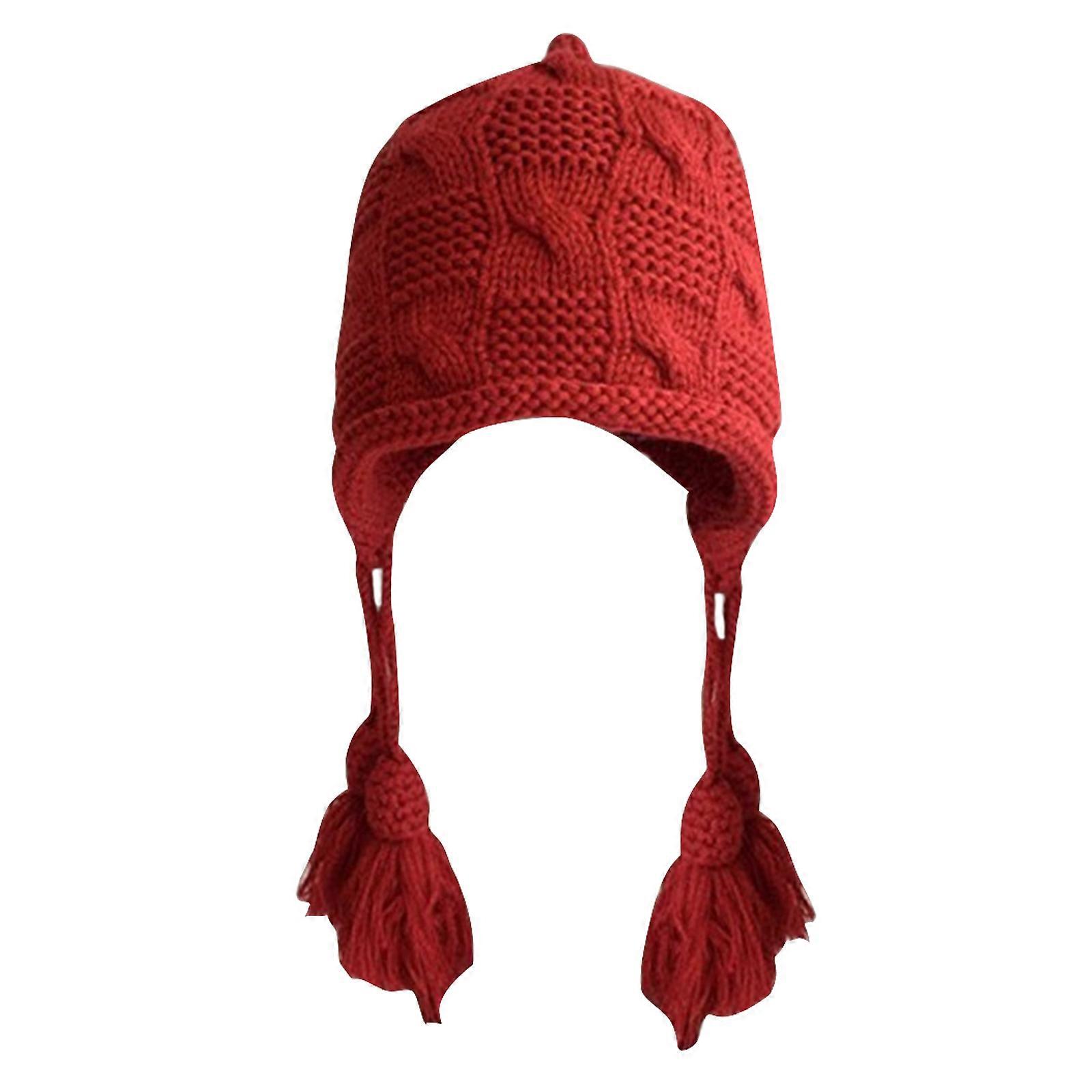 Ear for Protection Hat for Adult Windproof New Year Christmas Knitted Winter Hat Braid Design Keep Warm Cycling Hat Claret