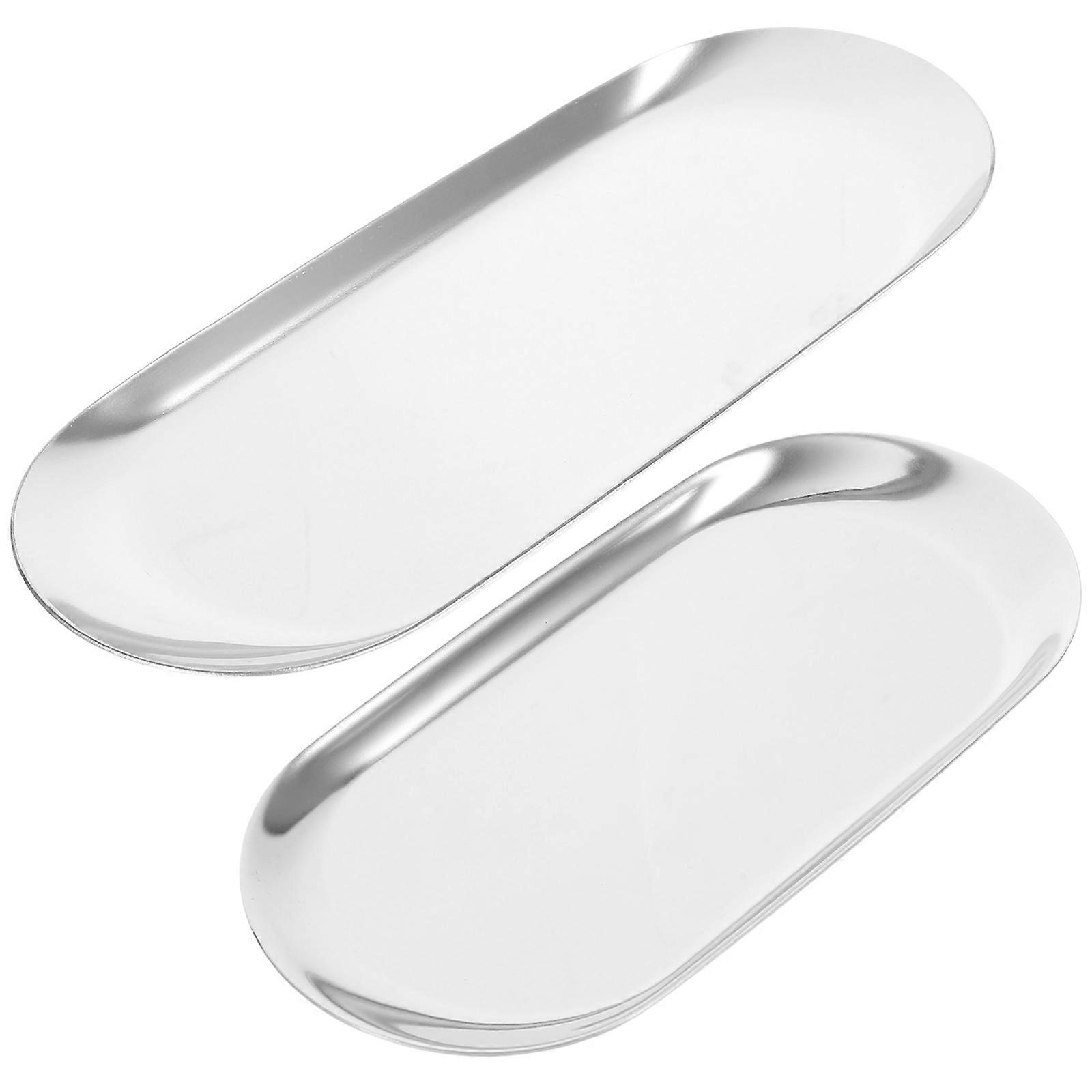 Oval Jewelry Tray Metal Jewelry Tray for Cleaning 6Pcs Silver Desktop Display