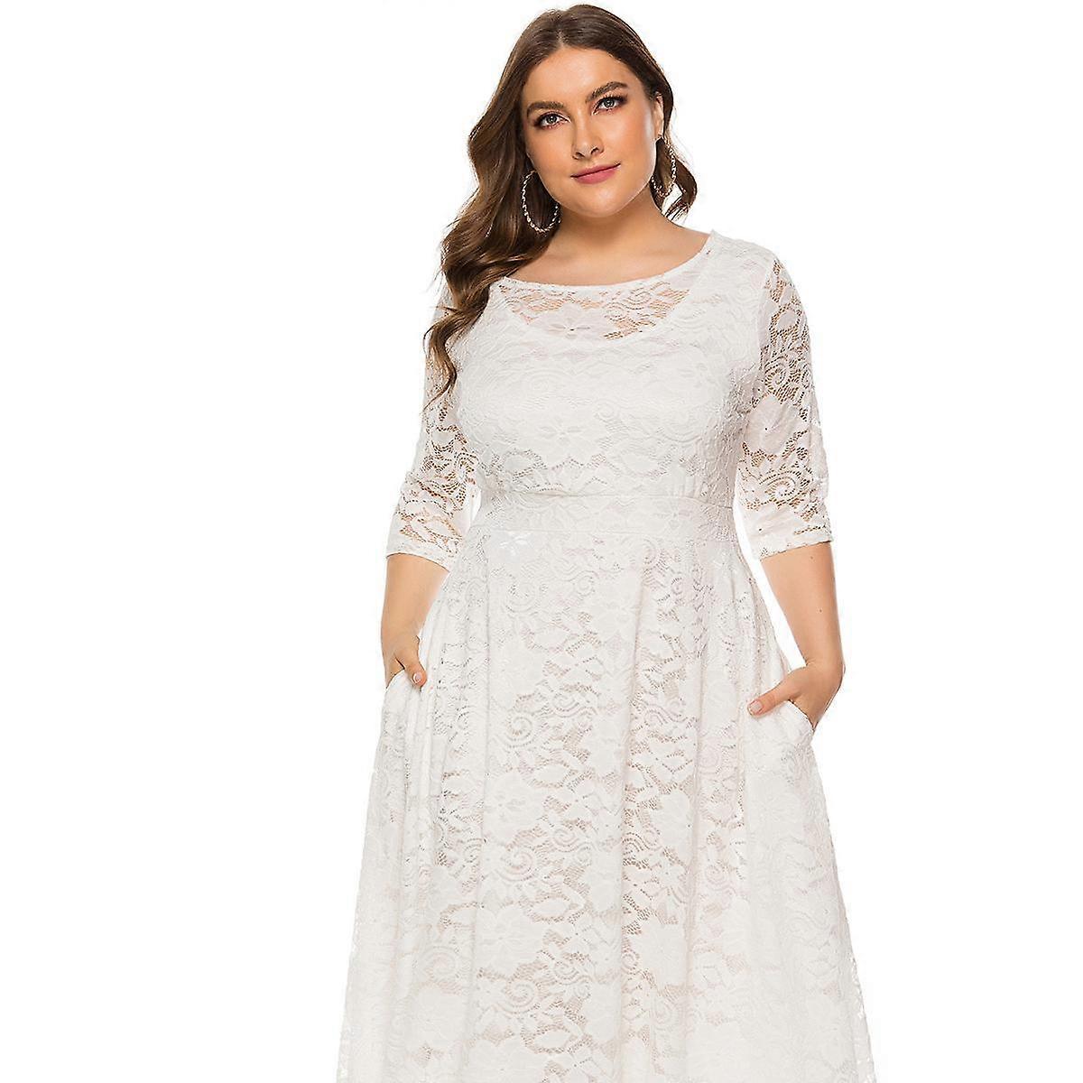 plus Size Xl-6xl New Fashion Popular Evening Dress Medium Length Hollow Lace Women Dresses Red White Black Blue Green Clothes