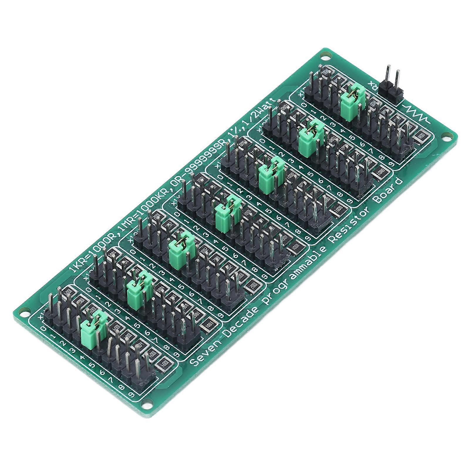 Programmable Resistor Board 0R‑9999999R Adjustable Resistance Module AC200V for Experiment Item Type: Programmable Resistor Programmable Resistance: 0 to 9,999,999 ohm, 1 ohm per step. Resistance Tolerance: ±1% Rated Power: 1/2W Maximum Working Voltage: 200V Product Size: Approx. 90 x 35 x 10mm / 3.5 x 1.4 x 0.4in