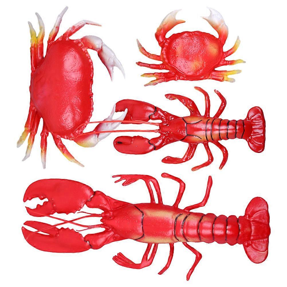 Realistic Lobster Shape And Crab Shape Plastic Models For Ocean-themed Party Decorations And Photography Props In Red Color 2 Sets
