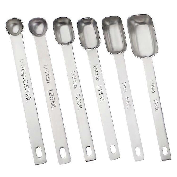 Heavy Duty Stainless Steel Measuring Spoons Set for Dry or Liquid Liquids, Fits in Spice Jars, Set of 6 with Leveler