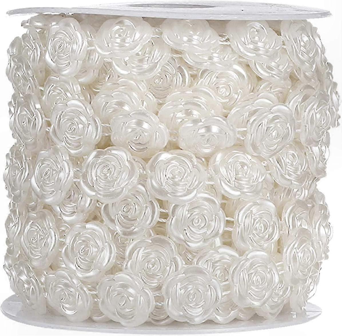 Plastic Flower Beads String Trims Imitation Pearl Garland Strand Rose Beads Sew On Trims Embellishment For Wedding Party Sewing Trims Cake Decoration Grand Event Invitations, Hair Pins, Bouquet wedding dresses, bags and other decorative accessories. Perfect for many craft projects.The chain is made of imitation pearl plastic bead, beautiful, sparkly and shiny, not easy to fade, adding very nice visual appeal to the bling.Easily stick or sew to any surface like cloth, glass and cloth; flat bottom makes it easy to attach, it's a good time to trim bridal or wedding-related things with your endless imagination.Wide application: the bead chain with rhinestones can be wrapped around vases glass, candles, flower bouquets, gifts, decorate wedding cakes, bridal bouquets, vases, wedding dress, veil, shoes, bikini and much more.