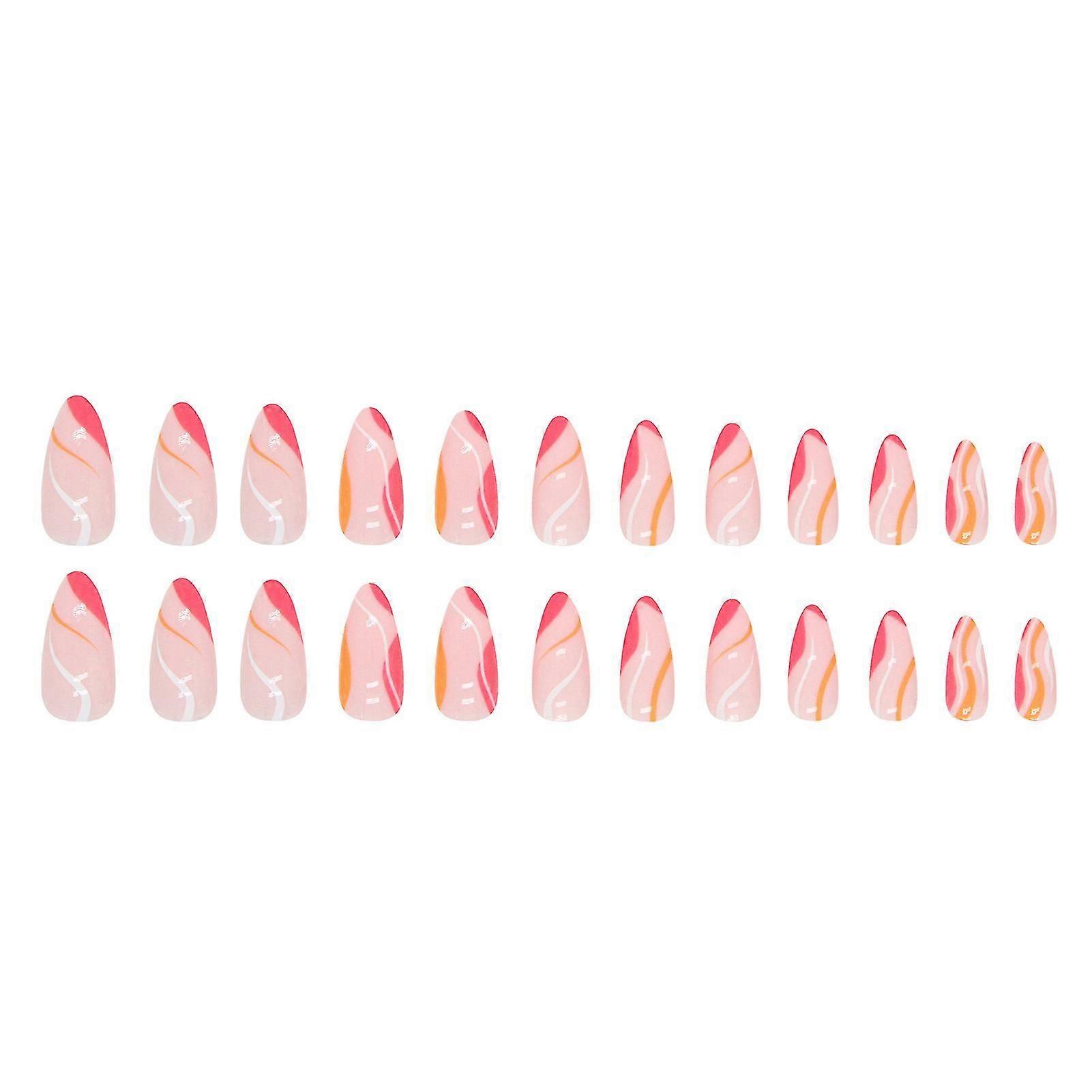 Pink Rose Red Wave Printed Almond False Manicure Charming Com Glue Models