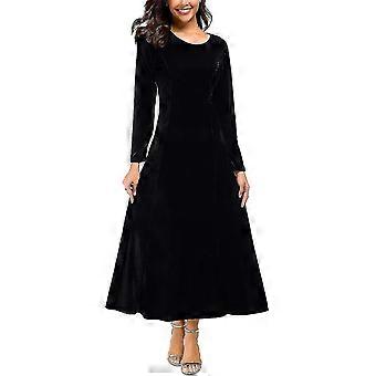 Rundhalsausschnitt Langarm Samtkleid-schwarz-l