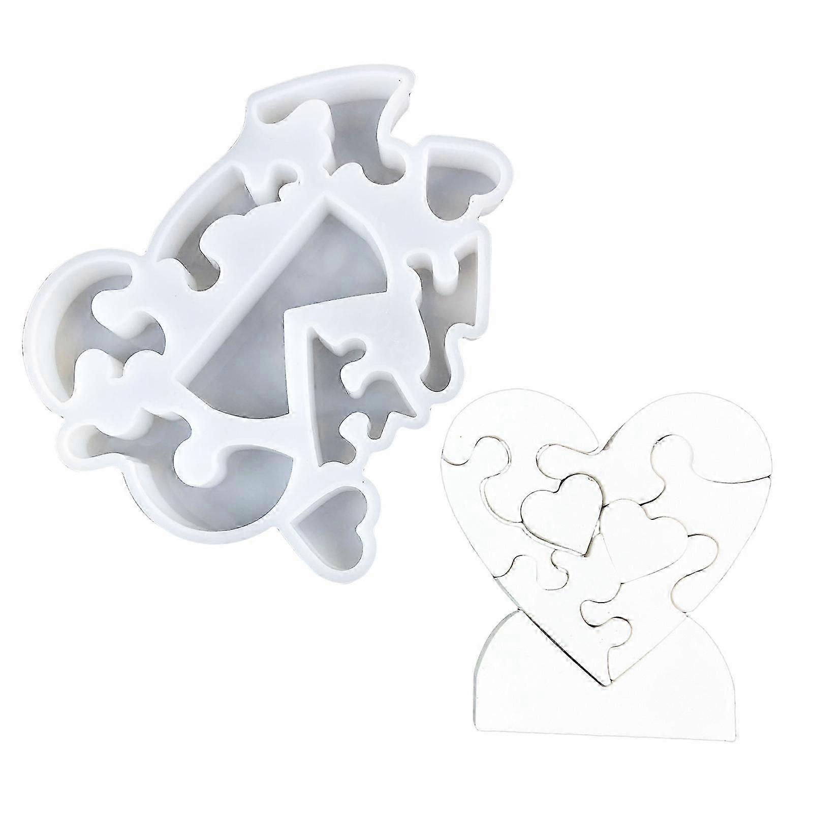 Desk Ornament Mould Flexible Silicone Mold for Love Heart Puzzle Shaped