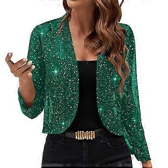 Women's Mesh 3/4 Sleeve Open Front Sequin Bolero Glitter Cropped Cardigan Jacket Cocktail Party Shrug Short Coats Emerald green XL
