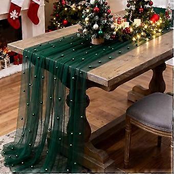 Pearl Sheer Table Runner for Wedding and Party Decoration, European Style Polyester Mesh Table Decor Fabric