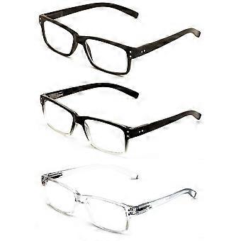 3 Paar leichte rechteckige Unisex-Lesegeräte mit Federscharnier - Klar Blau Schwarz Lesebrille - Federscharnier 3.25