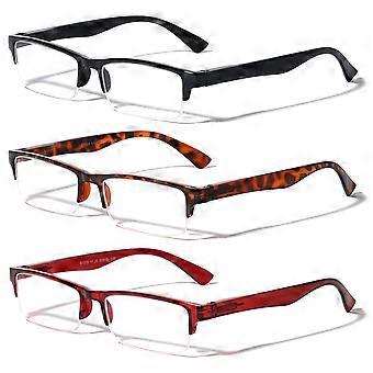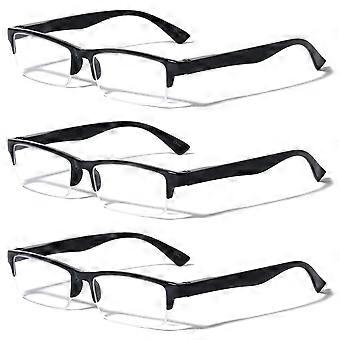 3 Paar rechteckige Lesebrillen mit halbem Rand - Einfacher klassischer Leseer mit klaren Linsen - Federscharniere +3,25