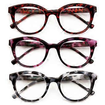 3 Paar Frauen Runde Marmor Schildkröte Lesebrille - Bequeme Federscharnier Klare Linse Lesegerät ZT108 +3.25