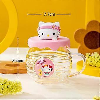 For Sanrio Collaboration Glass Cup Honey Cant-Shaped Water Cup for Kids HelloKitty&Kuromi Pattern Mug with Cartoon Silicone Lid