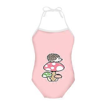 Einteiliger Badeanzug für Mädchen, hautfreundlich, Tankini, weich, mit Pilz-Igel-Motiv, Schnürung, rosa, Größe 3-4 Jahre