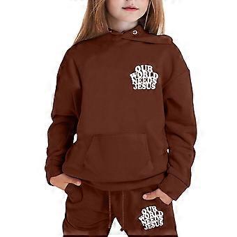 Baggy-Trainingsanzüge für Jungen und Mädchen, 2-teilige Outfits mit Grafikprint, Preppy-Stil, bestehend aus Pullover-Hoodies und Trainingshosen, Kaffeebraun, Größe 3-4