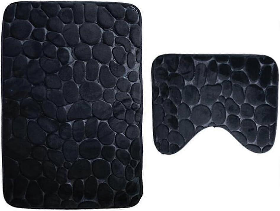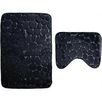 Set of 2 Extra Soft Non-Slip Polyester Bathroom Rugs Black
