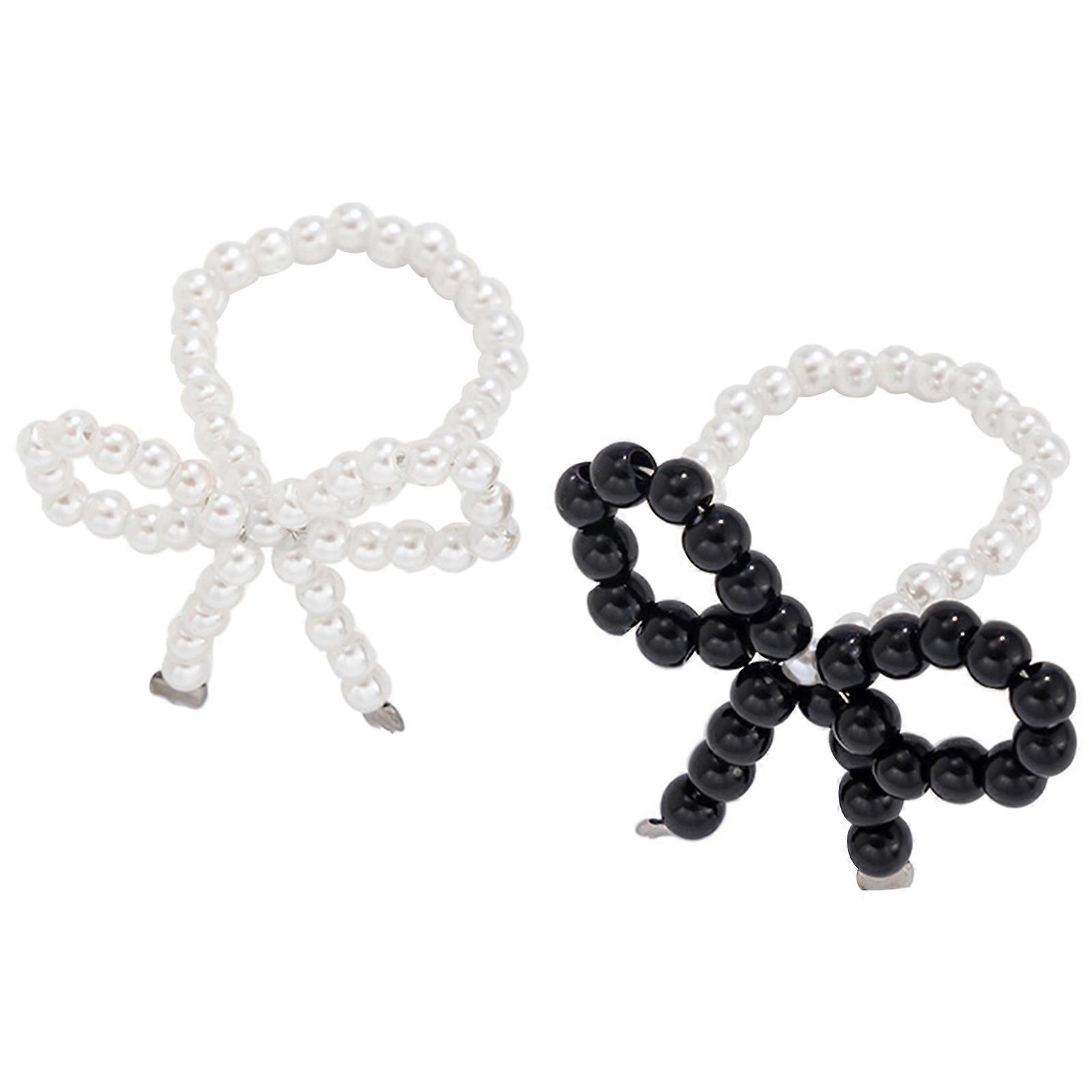 Set of 2 Bowknot Charm Rings Beaded Bows Finger Rings Decoration Bows Tie Rings Ornament Fashion Accessory for Parties