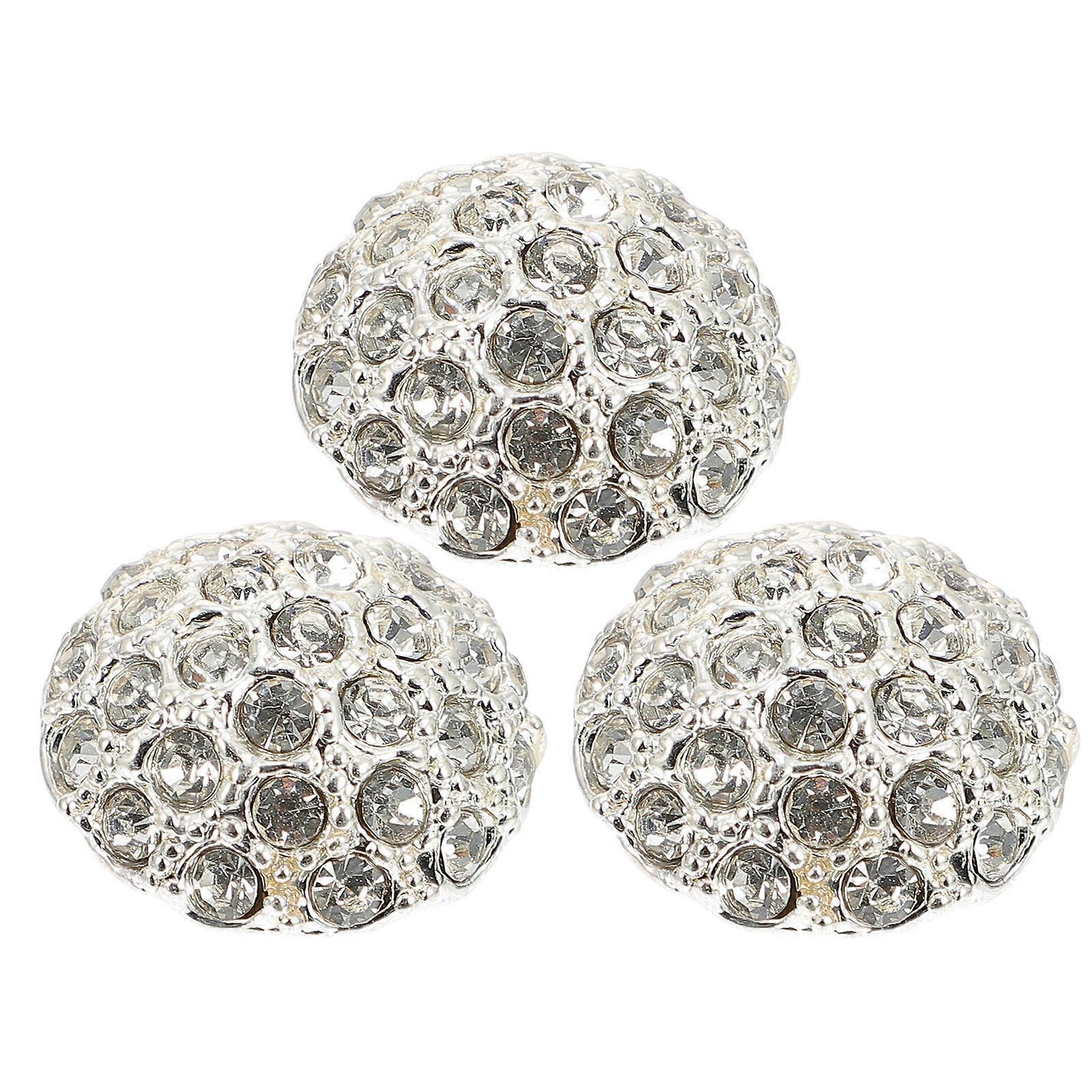 Silver Alloy Decorative Sewing Buttons for Upholstery and Crafts with Rhinestone 3pcs