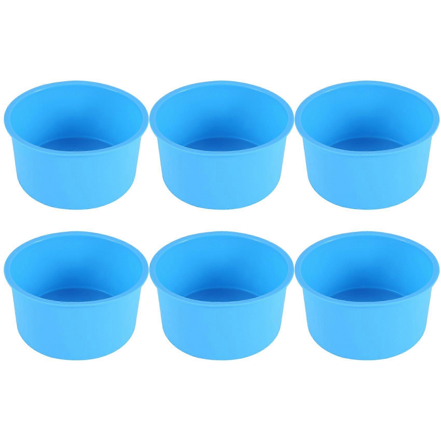 Silicone Mini Cake 4 Inch Round Baking Pan Non-Stick Silicone Baking Mold Bakeware Pan Reusable Blue, Set of 6