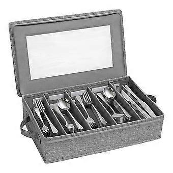 Silverware Storage Box,Flatware Organizer with Zipper Lid, 5 Compartment Cutlery Case with Adjustabl