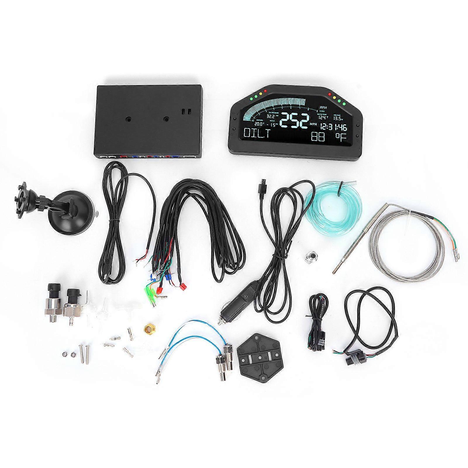 Feature:1. Equipped with low consumption LCD screen and 8 LED lights with sequential indicator function.2. Advanced system with time clock function, and you can connect monitor and DPU through Bluetooth.3. Backlight dimmer adjusted automatically and manual, there are 7 color adjustable, 11 backlight modes optional.4. Intelligently display RPM, speed, oil pressure, oil temp, water temp, boost, air fuel ratio, EGT and voltage.5. Chinese/English language can be selected, suitable for all 12V vehicles to better meet your needs.Specification:Item Type: Dashboard Sensor KitMaterial: PlasticDisplay: RPM, speed, oil pressure, oil temp, water temp, boost, air fuel ratio, EGT and voltageAlarm Setting: SPEED, TACHO, WATERTEMP, OIL.TEMP, OIL PRESSURE, BOOST, VOLTSpeed Belt Display: 9000RPM MaximumDisplay Type: DigitalLanguage: Chinese/EnglishWorking Voltage: 9V-16VFitment: All 12V vehiclesControl Unit Current Consumption: <200MA (when IGN ON) <1MA (when IGN OFF) <5MAOperating Temperature Range: -20 to +60 (humidity below 80%)Storage Temperature Range: -30 to +80 (humidity below 80%)Corresponding Speed Pulse: 2, 4, 6, 8 pulsePulse free: 1,274 - 16,562 pulses/KM (same as pulse 2 - 26)Corresponding Cylinder Number: 1, 2, 3, 4, 5, 6, 8 (cycle)Speed (SP): 0-255KM/HEngine Speed: 0 - 9000RPMOil Pressure (OIL P.): 0-150PSI or 0-10BARTurbocharger (BOOST P.): -15-45PSI or -1-3BARAir Fuel Ratio (AFR): 20-10:1Oil Temperature (OIL T.): 0-150 or 0-300Water Temperature (WATER T.): 0-150 or 0-300Exhaust Temperature (EXT T.): 0-1300 or 0-2400Voltage: 9-16VClock: 24H clockFrequently questions and answers:1. What kind of display screen does this use? Can the backlight color of the display be changed?Answer: Use a low-power LCD display screen. can.2. Can the speed unit be changed? KPH, MPH?Answer: Yes. The multi-function racing car modification table can switch between KPH (units per kilometer per hour) and MPH (units per mile per hour).1. Can the pressure unit be changed?Answer: You can switch between BAR/PSI units in the multi-function racing car modification table.2. Can the temperature unit be changed? Celsius, Fahrenheit?Answer: Yes. The multi-function racing car modification table can be switched between Fahrenheit () and Celsius () units.3. Can be used on motorcycles?Answer: Suitable for all 12V vehicles, and has the function of life waterproof, which can be installed and used on motorcycles.4. Is this model equipped with all sensors? What is the sensor thread size? Can the sensor of the original car be connected?Answer: We are equipped with oil temperature sensor, water temperature sensor, oil pressure sensor, turbocharger sensor and exhaust sensor sensor with uniform thread size ZG1/8. Therefore, the original car sensor cannot be connected, and the original car sensor needs to be replaced with our sensor. Otherwise, the thread does not match and cannot be installed.5. What should I do if my vehicle does not have an ECU?Answer: Usually the signal needs to be connected to the sensor, and the speed and vehicle speed need to be connected to the ECU.If the vehicle does not have an ECU, the speed can be connected to the negative electrode of the ignition coil. At this time, a speed adapter (sold separately) needs to be installed, otherwise it is easy to be interfered by the speed. Some customers want to connect the speed signal to the crankshaft sensor, we do not recommend installation. Because the pulse signal of the crankshaft sensor is much higher than the ECU output, the speed signal will be inaccurate.Connect the Hall speed sensor to the vehicle speed, and then perform the vehicle speed calibration according to the instructions. The vehicle speed sensor can be installed on the front or rear wheels. Other signals are still connected to the sensor and will not be affected.6. How to receive the air-fuel ratio signal? There is no air-fuel ratio sensor inside.Answer: The air-fuel ratio signal is directly connected to the narrow-area oxygen sensor (0-1V) of the original car, so we do not have another air-fuel ratio sensor.7. Why is the vehicle speed always showing 255 when I installed only?Answer: The vehicle speed keeps showing 255, which is most likely caused by low-speed calibration. Please re-calibrate the vehicle speed according to the instructions. Vehicle speed calibration requires the vehicle to drive to 40KM/H, and then press the confirm key. If the vehicle speed is too low, the calibration will fail, and the vehicle speed will display 255.8. There are several spare sockets on the sensor converter. Can I use them to connect other data?Answer: No. The spare socket on the sensor converter cannot be used for other purposes. This is because the converter molds of 904/907/908/909 models are the same. The free sockets are reserved for the combination tables of other models.9. Why can't I read the speed after installing the multifunctional conversion meter?Answer: Usually the speed signal can be connected to the ECU. If the v