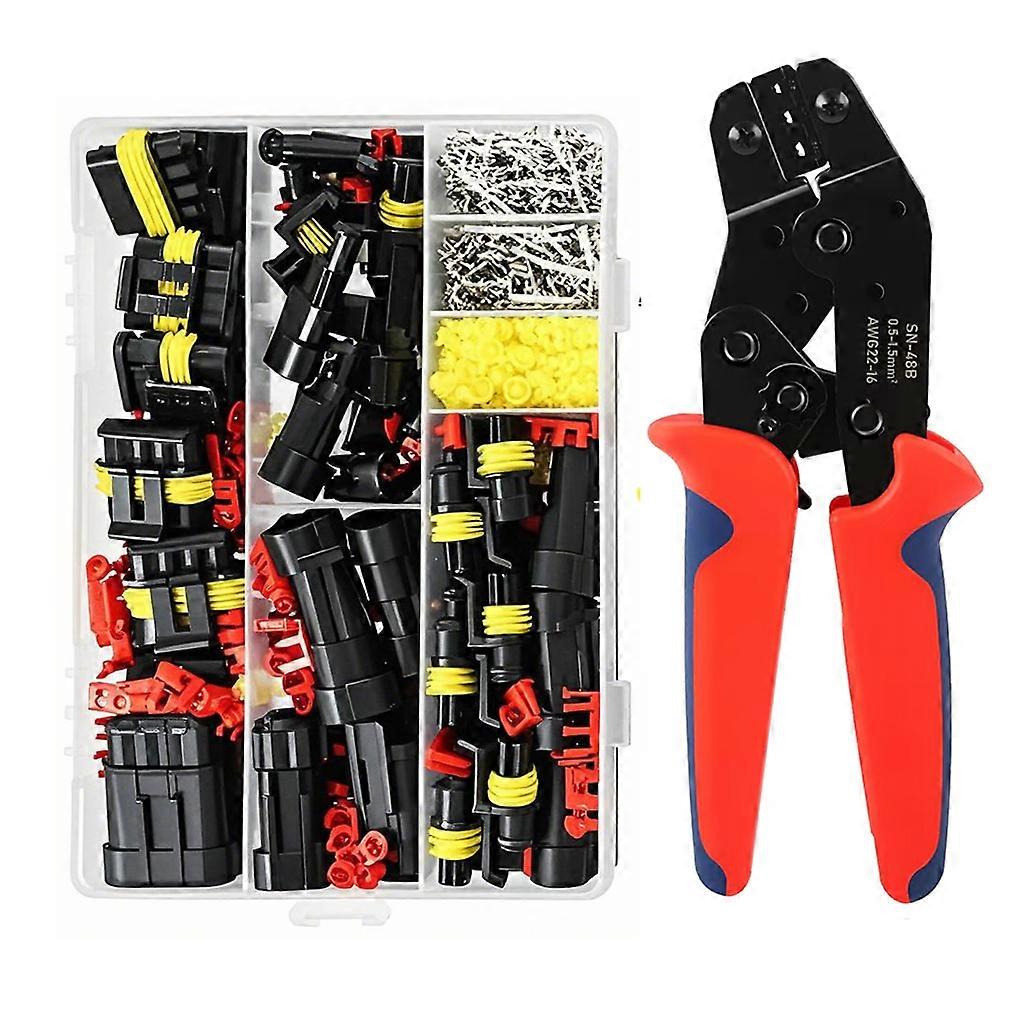 SN-48B Ratcheting Wire Crimping Plier 22-14 AWG 0.5-2.5 mm² Crimper Tool, 352 PCS Waterproof Automotive Wire Connectors